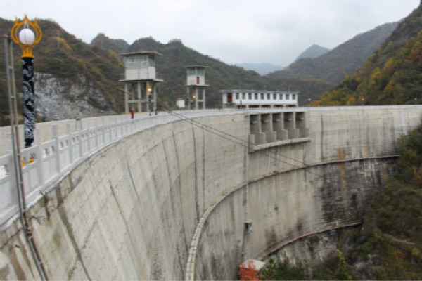 該工程位于勉縣二道河鄉(xiāng)褒河支流沙溝河中段,壩頂寬4.0m、底寬16m、壩高55m、壩頂弧長220.78m,為變?nèi)碾p曲拱壩。該壩壩體結(jié)構(gòu)復雜,此雙曲拱壩結(jié)構(gòu)為陜西第一座,技術(shù)含量較高。該工程于1998年9月1日開工,2003年1月31日竣工。