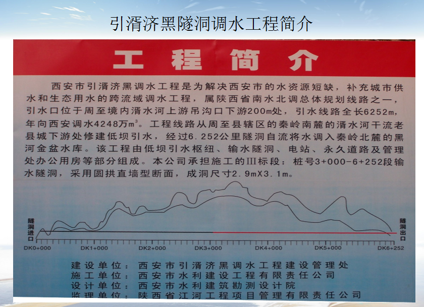 該工程屬陜西省南水北調(diào)總體規(guī)劃線路之一,引水口位于周至境內(nèi)湑水河上游吊溝口下游200m處,引水線路全長6252m,年向西安調(diào)水4248m3。由低壩引水樞紐、輸水隧洞、電站、永久道路及管理處辦公用房等部分組成。